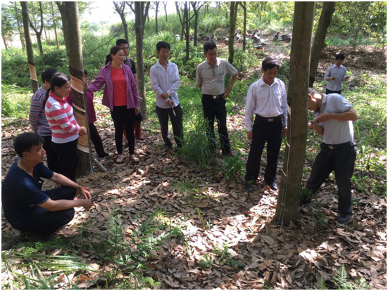 此次培訓(xùn)采取理論與實際操作相結(jié)合的方式,農(nóng)場割膠總輔導(dǎo)員許安樂針對橡膠開割樹的管理和常見病害治療等方面開展詳細(xì)的講解,到橡膠園開展磨刀技能和割膠技術(shù)現(xiàn)場指導(dǎo),對學(xué)員在割膠操作過程中存在的不規(guī)范動作一一予以糾正。通過此次復(fù)訓(xùn),有效提高了職工科學(xué)管理橡膠園的水平,為今年干膠的高產(chǎn)穩(wěn)產(chǎn)奠定了基礎(chǔ)。