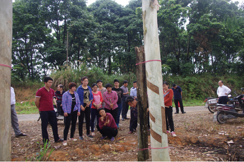 劉金鳳示范割膠方法。